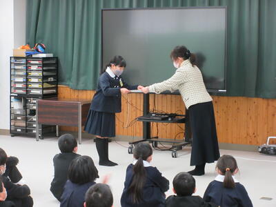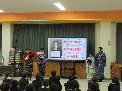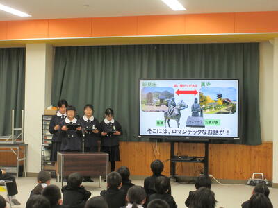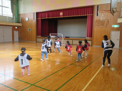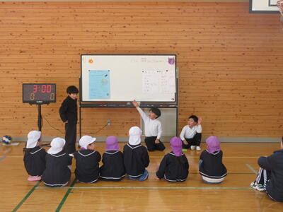 1年生が、哲西認定こども園のキリン組さんとのふれあい活動を体育館で行いました。1年生が活動内容やあいさつ、説明などの係りを自分たちで考えて決めました。当日は、1年生が主体的に運営をし、みんなで楽しく活動しました。