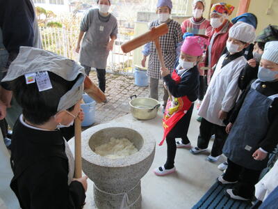 文部科学省では、幼児教育から小学校教育へとスムーズに対応するため幼保小の架け橋プログラム実施を進めています。哲西地区でも担当者が話し合いの場を設け、架け橋期のカリキュラム作りを始めました。その取り組みの一環として、今年度、こども園との交流を計画しました。キリン組さんは、こども園からバスを使って訪問してくれました。