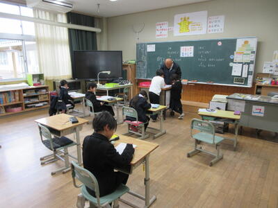 町内の中学校から2名の先生が参観され、来年入学する児童の様子も見ていただきました。