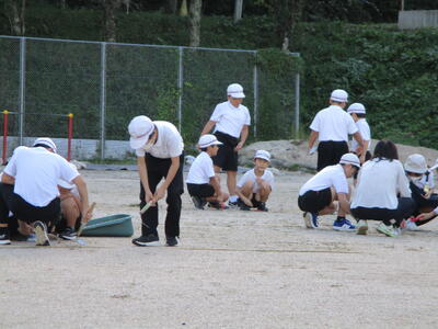 草取りモーニング 投稿: HP管理者 (17:43) 環境委員会が、環境美化を目的に「草取りモーニング」を企画しました。時間になると、朝の準備を済ませた子どもたちが、にこにこしながら運動場へ集合します。1・2年生も率先して、草取り道具やてみを準備していくれました。自分たちの学校を自分たちできれいにする心が育っています。 Tweet -