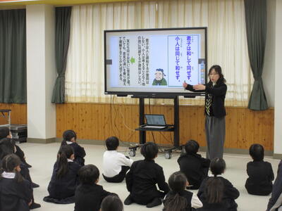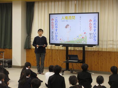 朝礼では、人権担当の先生から、人権とはなにか、についての説明がありました。