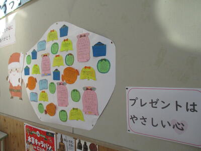 取り組みの1つとして、友達の良いところを書いて玄関に貼りました。心温まる掲示物が完成しました。