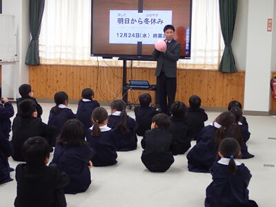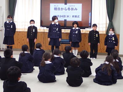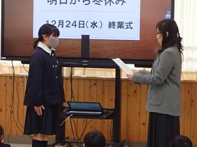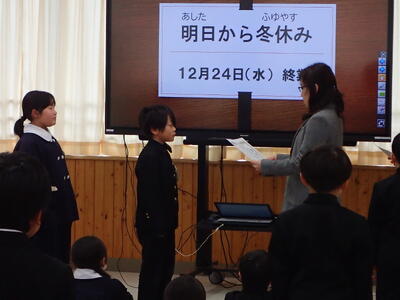 12月24日(水)、終業式の前に、「表彰伝達」と「がんばったことの発表」を行いました。