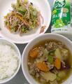 会食時には、自分たちで巻いた巻きずしを評価しながら、口いっぱいに頬張って食べていました。サイドメニューのすまし汁やサラダも好評でたくさんの人がおかわりをしていました。